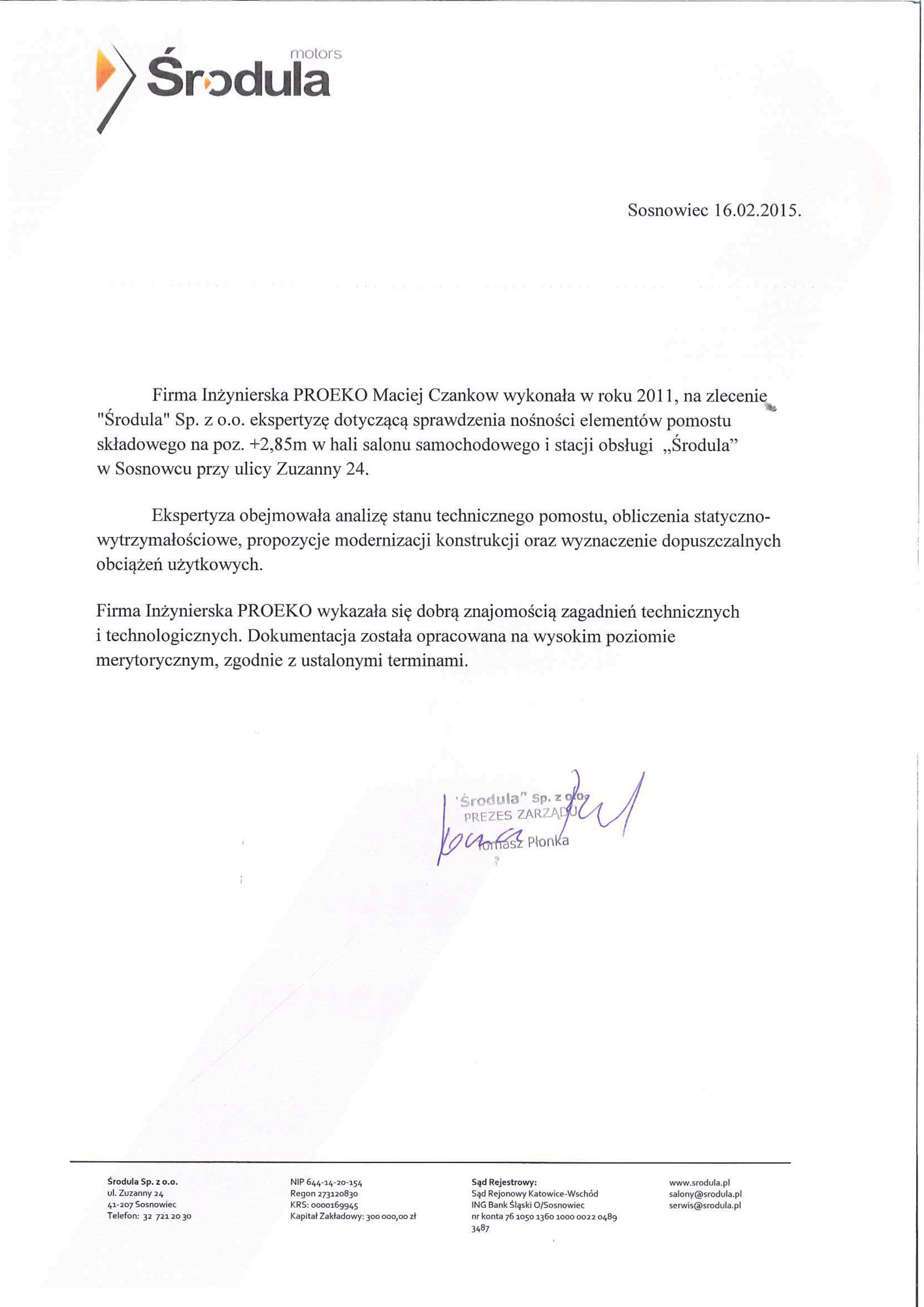 Kamieniec - Ekspertyza nośności stropu stalowego w salonie samochodowym „Środula” Sp. z o.o.,