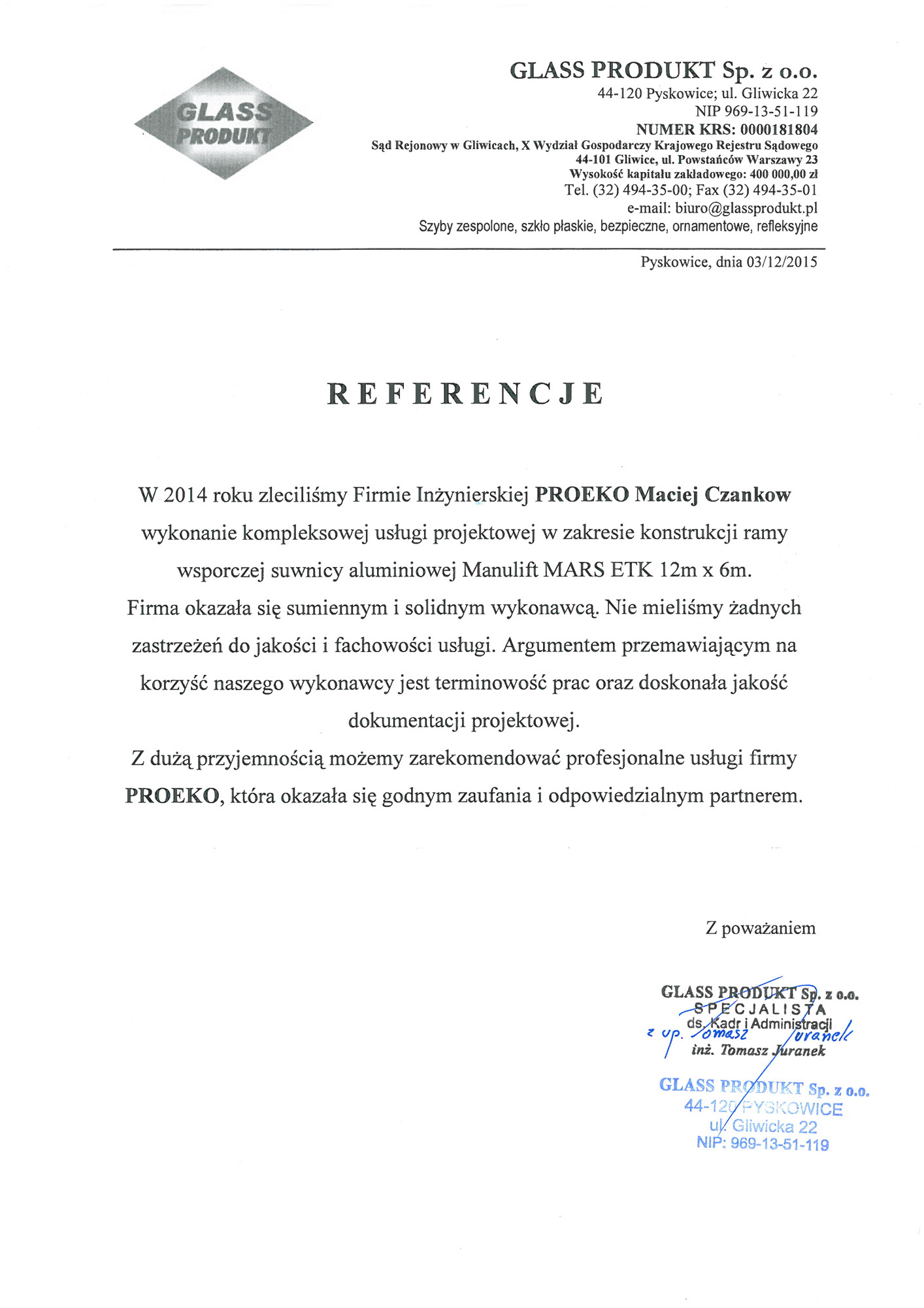 Firma Inżynierska PROEKO Maciej Czankow działa na rynku od 2010 roku